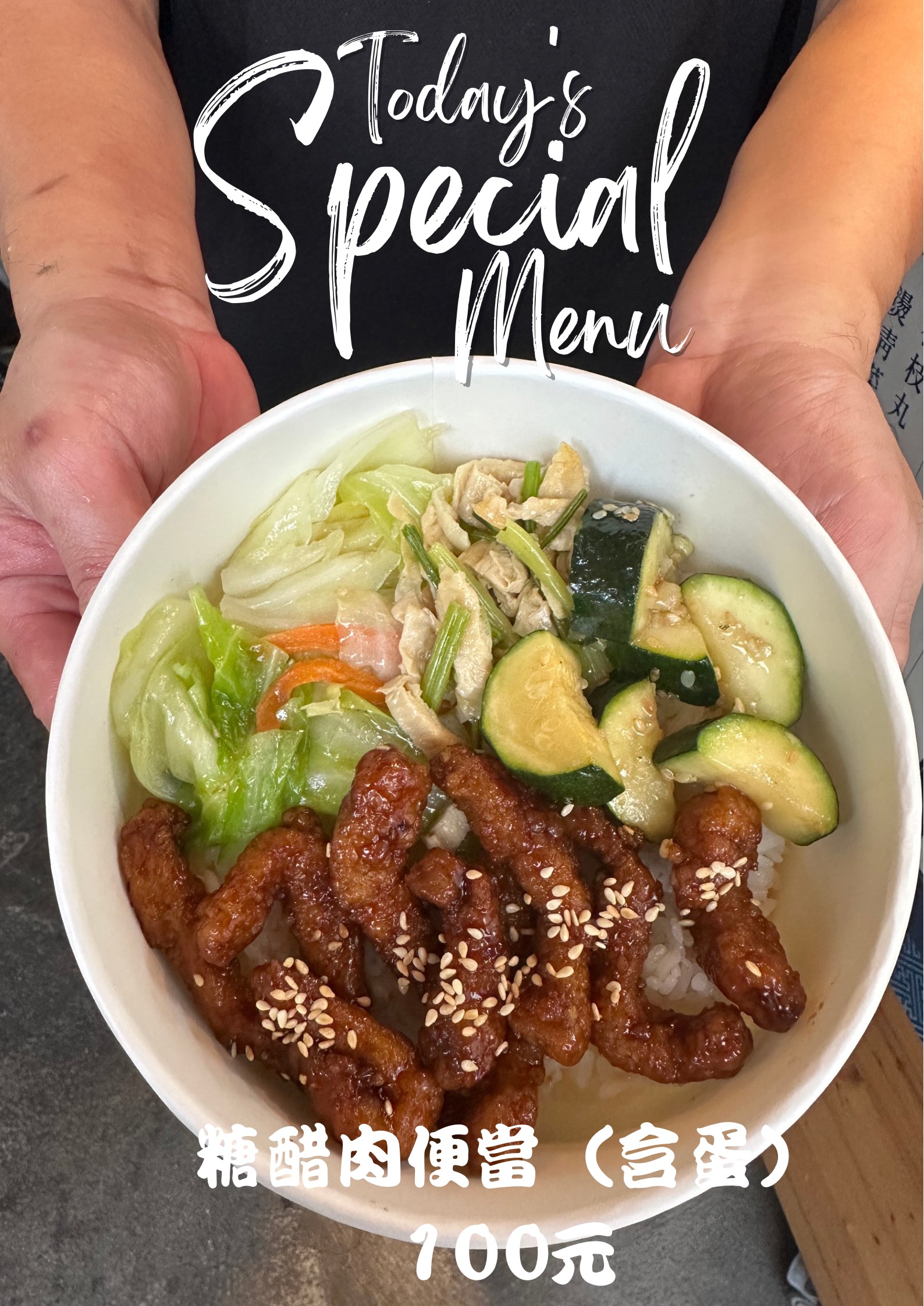 糖醋肉便當含蛋NT$100 再加一份白飯(+NT$10)-+蛋(+NT$10)-+蛋 (必選) 全熟 半熟 糖醋肉便當含蛋 數量 加入購物車 你可能也會喜歡 燒肉飯 NT$80 魯肉飯 NT$40 椒麻雞腿飯(有一個荷包蛋) NT$120